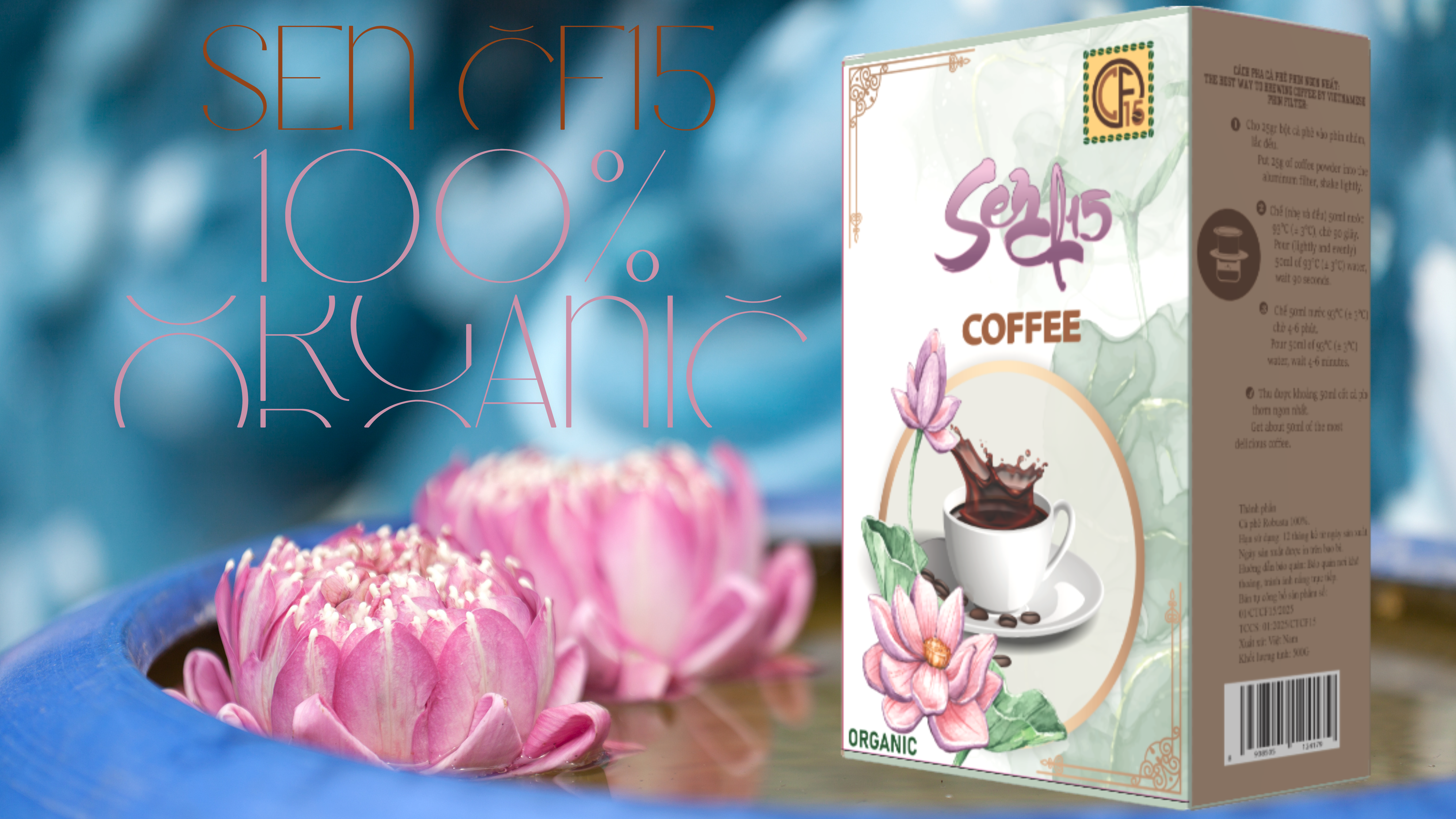Sen CF15 Coffee là dòng cà phê hữu cơ đặc sản nổi bật của Công ty TNHH MTV Cà phê 15, được sản xuất từ vùng nguyên liệu sạch do Công ty quản lý và chăm sóc theo quy trình hữu cơ khép kín đạt tiêu chuẩn EU – USDA, tuyệt đối không sử dụng phân bón hóa học, thuốc trừ sâu hay hóa chất độc hại. Thay vào đó, quá trình canh tác và chế biến áp dụng nguyên vật liệu thân thiện với môi trường, sử dụng chế phẩm sinh học tự chế, vừa bảo vệ đất đai, nguồn nước, hệ sinh thái, vừa giữ nguyên sự tinh khiết tự nhiên của hạt cà phê. Từng công đoạn sản xuất được kiểm soát nghiêm ngặt từ chọn giống, chăm sóc, thu hái đến rang xay hiện đại, đảm bảo an toàn cho sức khỏe và bảo vệ môi trường, giữ trọn hương vị nguyên chất, đậm đà đặc trưng của cà phê Robusta. Không chỉ chú trọng chất lượng, Sen CF15 Coffee còn nổi bật với thiết kế bao bì hiện đại, tinh tế, lấy cảm hứng từ hoa sen – biểu tượng của sự thanh khiết và ý chí vươn lên từ bùn lầy, khẳng định giá trị văn hóa dân tộc và truyền tải thông điệp nhân văn sâu sắc. Hoa sen luôn vươn mình từ bùn lầy để tỏa hương thơm ngát, cũng như hành trình của người nông dân Tây Nguyên vượt qua khó khăn về khí hậu, giá cả, thị trường, kiên định với con đường canh tác hữu cơ, bảo vệ môi trường và sức khỏe cộng đồng. Mỗi hạt cà phê Sen CF15 là minh chứng cho ý chí vượt thử thách, để khi thành tách cà phê trên tay người thưởng thức, đó không chỉ là hương vị đậm đà mà còn là câu chuyện về sự bền bỉ, sáng tạo và khát vọng vươn tầm thế giới, gửi gắm thông điệp: “Tinh khiết từ tâm – Vươn tầm thế giới”.
